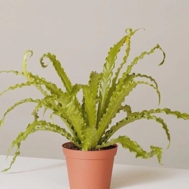 El Nido de ave es un helecho de frondas (falsas hojas) anchas que se agrupan desde la base creando un embudo o nido de ave.