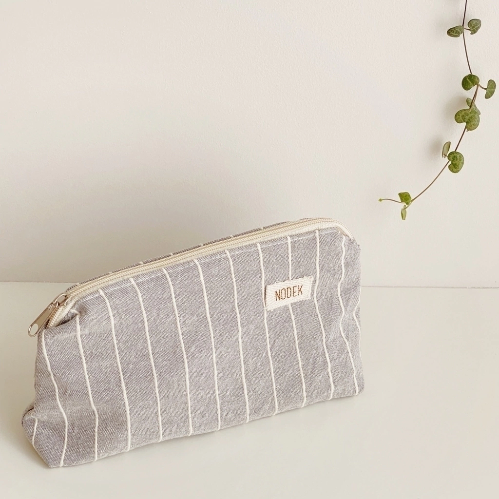 Confeccionado en Tusor gris, toffe o arena jaspeado con rayas naturales.